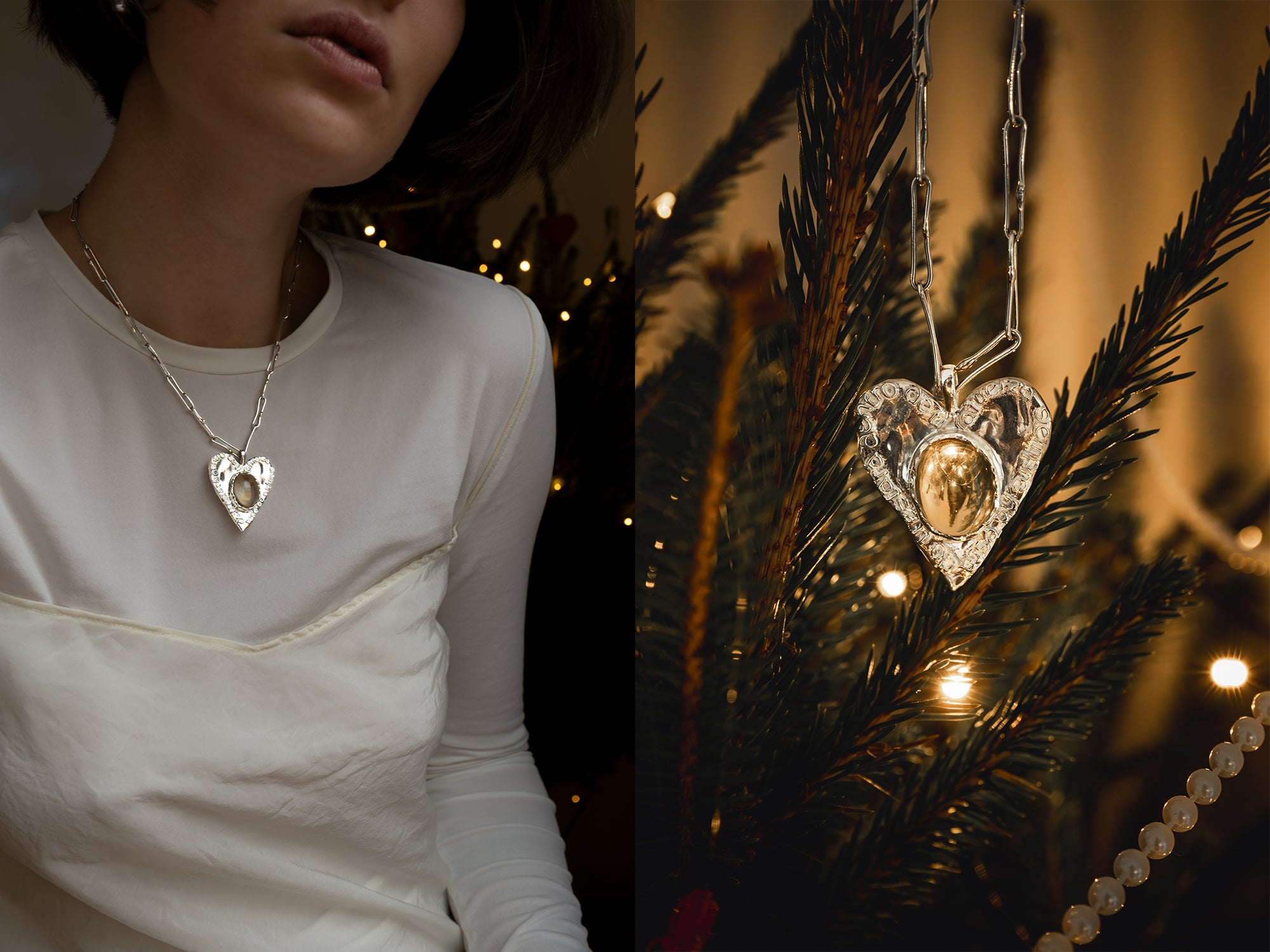 Asya Heart La Fuerza pendant chain necklace in silver and gold